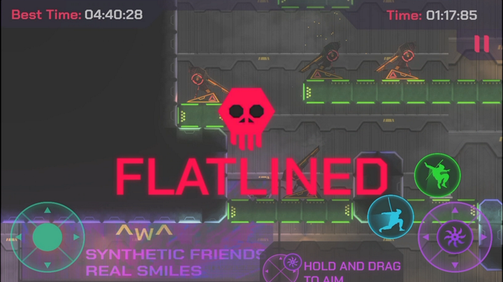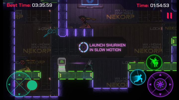 Hanz0 is a 2D action platformer for Android devices where you play as a retired ninja in a dystopian future trying to rescue his kidnapped cat by using a throwable shuriken which can bounce off various surfaces and kill enemies.
